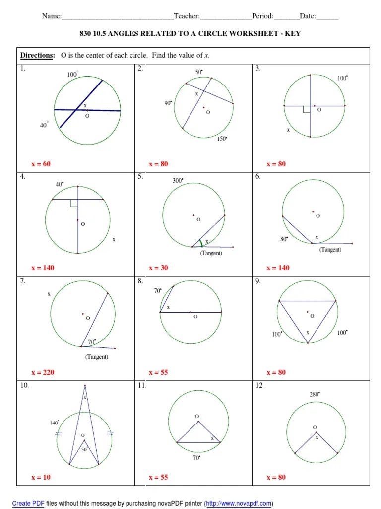 Find the measure of the arc or angle indicated. The measure of an inscribed angle is half the measure of the intercepted arc. Find the measure of the arc or angle indicated. Assume that lines which appear tangent are tangent. I can use properties of a tangent to a circle to solve for missing values. You can do the exercises online or download the worksheet as pdf. Angles inside and outside circles worksheet. Find the measure of the arc or angle indicated. Arc and angle relationships in circles worksheet. Decide if the following angles are central, inscribed, or inside. Sum of the angles in a triangle is 180 degree worksheet. Angles in a circle online activity for 9. An angle whose vertex is at the center of a circle.